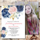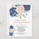 Erste Kommunion Floral Navy Blauer Rosa Einladung