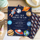 Eine erste Reise durch die Sonne 1. Geburtstag Wasserfarbenraum thematische Einladung, die mit der Einbeziehung der Party Ihres Kleinen personalisiert sein kann. Das Design zeichnet sich durch niedliche Aquarellbilder aus, und diese Einladung ist ideal, um aus diesem Welt-Party zu kommen! Das Geburtstagsalter kann auf Anzug jedes Geburtstagszeitalters angepasst werden.