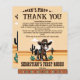 Die erste Rodeo niedliche Cowboy-Pferd Geburtstagsparty Dankeschön-Karte, bezauberndes braunes Babypferd in einem Cowboys-Hut und dekorierte Sattel auf der Landschaft von Arizona für Cowboys Western themed Geburtstagsparty.