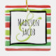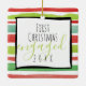 Feiern Sie Ihr erstes Weihnachtsfest als verlobtes Paar mit diesem modernen, maßgeschneiderten Ornament mit Weihnachtskerzenstreifen in Rot, Grün und Weiß mit moderner schwarzer Typografie auf Weiß mit einer schwarzen Grenzlinie. Personalisieren Sie es mit Ihren Namen auf der Vorderseite und "Erste Weihnacht Verlobt" mit dem Jahr auf der Rückseite. Entworfen von © Tim Coffey.