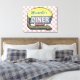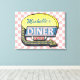 Erstellen Sie Ihre eigene, im Stil der 1950er Jahre gestaltete Leinwand mit Tafelzeichen mit dieser einfachen Vorlage. Diese coole Retro-Leinwand hat einen leicht bedrückten, rosa-weiß karierten Hintergrund mit einem Schild oben, auf dem "DINER" und "OPEN" stehen, in Neon mit Platz für Sie, um Ihren eigenen Vor- oder Nachnamen - oder ein anderes Wort, das Sie möchten - hinzuzufügen. Das Zeichen hat auch eine beleuchtete Pfeilgrafik. Die Farben sind in Rosa, Weiß, Schwarz, Blau, Gelb, Grau und Rot gehalten. Dieses Schild wird gut aussehen in Ihrem Essen, Zuhause-Küche oder 50er-Thema Bar. Füllen Sie einfach die DIY-Vorlage oder "Anpassen" aus, wenn Ihr Text lange läuft und Sie Textfarben und Schriftart verändern oder verändern müssen.