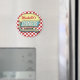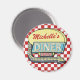 Erstellen Sie Ihren eigenen benutzerdefinierten, im Stil der 50er Jahre gestalteten Dinner-Kühlschrank-Magneten mit dieser einfachen Vorlage. Diese coolen Retromagnete haben einen leicht bedrückten, rot-weißen Hintergrund mit einem Schild oben, auf dem "DINER" und "OPEN" stehen, in Neon mit Platz für Sie, um Ihren eigenen Vor- oder Nachnamen - oder jedes andere Wort, das Sie möchten - hinzuzufügen. Das Zeichen hat auch eine beleuchtete Pfeilgrafik. Füllen Sie einfach die diy-Vorlage aus oder klicken Sie auf "Anpassen", wenn Ihr Text lange läuft und Sie möchten Textfarben und Schriftart verändern, verändern oder verändern. Ideal für Ihr Abendessen, Zuhause Küche, 50er Thema Bar oder 50er Party.