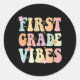Erster Klasse S Lehrer 1. Klasse zurück zur Schule Runder Aufkleber