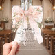 Die rosa Wasserfarbe Schleife ist mit Rosen und salbeigrünen Grünpflanzen dekoriert. Ein goldenes Kreuz befindet sich über dem Text. Die Rückseite zeigt ein schickes rosa-weißes Streifenmuster. Der Name Ihrer Tochter ist in einer wunderschönen Kalligrafieschrift geschrieben. Der gesamte Text ist editierbar.