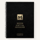 Das moderne Notebook besticht durch ein minimales Luxus-Design mit einem Gold-Logo aus gebürstetem Metall auf einem einfachen, schwarzen Ledertexturdruck. Individueller Firmenname in klassischer Blocktypografie mit Fachgebiet in den unteren Drittel. Dieses personalisierte Business-Notebook ist mit benutzerdefiniertem Text ausgestattet. Sie können sich personalisieren, indem Sie den Text mit den angegebenen Feldern ändern, oder mit der Schaltfläche "Nachricht" Kontakt mit dem Designer aufnehmen, um Hilfe zu erhalten.