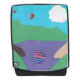 Der Rucksack dieses Erwachsenen wurde mit meiner Darstellung von bunten Ballons über einem Bergsee entworfen.