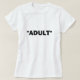 Typografietextkunst-T-Shirt Entwurf mit einem Singlewort "Erwachsener". Es ist ein großes Shirt für jedermann, das will, um zu sagen, dass sie das hohe Kleid haben und nicht ein Kind mehr ist. Es kann auch sein gibt speziellem jemand als Geschenk für 18. Geburtstag.