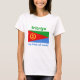 Sur le devant de cette chemise un titre et un slogan modifiables accompagne le drapeau érythréen avec sa couronne d'or dans un triangle rouge avec des triangles verts et bleus. L'arrière affiche une carte détaillée de l'Érythrée.