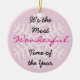Es ist die wunderbarste Zeit des Jahres Rosa Weihnachtsschmuck mit hübschen weißen Schneeflocken und einem weißen Polka Dot rosa Bogen und Band auf dem Rücken. Stellen Sie sicher, das Jahr auf der Rückseite zu bearbeiten!