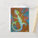 Vibrierender, starker Gecko klettert auf einem Orangenbaum gegen einen Türkishimmel. Das Bild wird mit Mosaikelementen gefüllt, und das gesamte 18" x 24" Vorlage wurde mit Aquarellen und Tinte geschaffen. Subtile Schattierungs- und Gold3d Glitterelemente machen diesen kleinen Typ-Pop! Spaß und flippiges!