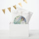 Bezaubernde Sommerabende Glitzern mit einer hübschen Fee, die über die Wiese tanzt. Fantasiewesen in Blues, Salbei und Aquas. Vintage Illustration mit Ihren personalisierten Details ist genau die richtige Touch für verzauberte Themen für Duschen, Geburtstage und andere Veranstaltungen.