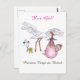 Eine wunderbare Postkarte für zukünftige Mamas, die jedem lasse, "Es ist ein Mädchen!" zu wissen. Ein wunderschönes Geschenk speziell bei einer Babydusche. Ein großer weißer Storch bringt ihr Freudenbündel mit sich, da ihr ein kleiner Teddybär auf Herzballons schwebt.