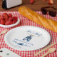 Es ist eine junge blaue Jeans Baby-Duschvorlagenpapier Teller personalisierte Babydusche Geschirr, niedlichen Baby Denim Jeans hängen an einer Linie blauen Jeans Kappe einfache minimalistische moderne Babydusche personalisierte Teller