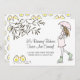 Niedliche whimsical Mom mit Regenschirm und Regenstiefeln zu laufen. Im Vordergrund stehen zwei Säuglingsküken und der Test lautet: Es regnet Babys, Zwillinge kommen! Personalisieren Sie mit Ihrem Namen und Fälligkeitsdatum.