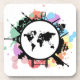 Es ist Reise-Zeit-Illustration mit Weltkarte und historischen Stätten Dekoration auf buntem Grunge Hintergrund
