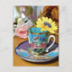 Englische China Teetasse und Untertasse mit bunten Blume Große Postkarte für Einladungen und Partys. Kunst, die mit der Wombo Traum-KI von minx267 erstellt wurde