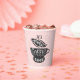 Diese heiße Getränketasse enthält kokalige Handschrift, die auf rosa Hintergrund "It's Always coffee time" steht. Die Schrift enthält dekorative Wimpern und dekorative Wirbel.