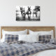 Vier Esel auf einem Feld an einem miesen Wintermorgen.