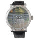 Uhr, Vintage Männeruhr mit schwarzem Lederarmband