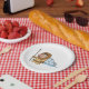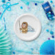 Ein von seinem Iglu wärmstens stehend gekleideter Eskimo. Dieses Design sieht wirklich effektiv aus bei diesen Paper-Tellern