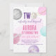 Invitation pour les enfants avec "deux infinity et au-delà" texte et avec des planètes mignonnes design.