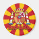 Das nationale Wappen von Espana (Spanien) und der Ländername sind in einer Perspektive gestaltet. Diese Bilder befinden sich in der Mitte eines Sternexplosion-Hintergrundes, der mit den Farben der spanischen Flagge gemacht ist.