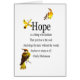 Citez par Emily Dickenson, le "espoir est une chose avec les plumes que les perches dans l'âme et chante à l'air sans mots et n'arrête jamais du tout."