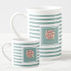Espresso oder Kaffee Tasse mit aquamarinen Nautikstreifen und einem individuellen Stadtbild. Design-Tipp für Personalisierung: Für Städte mit kurzen Namen, beginnen Sie mit einer Leerzeile, bevor Sie den Namen auf der mittleren Zeile platzieren, um sicherzustellen, dass er zentriert erscheint. Für längere oder mehrsprachige Stadtnamen verwenden Sie 3 Zeilen, indem Sie Bindestriche verwenden oder "Stadt" oder "Staat-Name" hinzufügen, um das Design ausgewogen behalten.