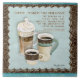 Herrliche Kaffeekunstfliese entweder für ein trivet, einen Wandbehang oder anderen Gebrauch. Ursprüngliche Kunst durch Audrey Jeanne Roberts hat ein schönes schokoladenbraunes Strudelmuster in der Wasserfarbe und einen blauen Wäschehintergrund des Aqua mit einem Trio der Kaffee-Tassen voll dunklen reichen Kaffees. Ein I ein latte mit gepeitschter Creme, einem Espresso und einer hohen Tasse von Java. und Schokoladenwüsten auf der Seite. Praline, Trüffeln und Himbeeren fügen ein Spritzen der Farbe hinzu und entwerfen. Im Text ist das inspirierend Zitat, "Kaffee macht Sie glänzend. Die Power des Verstandes eines Mannes werden direkt zur Quantität des Kaffees proportioniert, den er trinkt. Sir James Mackintosh, schottischer Jurist, Historiker und Philosoph"