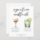 Cette carte de cocktails chic et signature propose une tyopgraphie noire simple au-dessus de 2 boissons et leurs ingrédients pour votre bar mariage. Un martini expresso et un dessin gin et tonique ajoutent une touche cool à votre feuille de menu. Complétez avec les noms du couple et la date de leur réception.