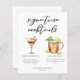 Cette liste de cocktails chic et signature propose une typographie noire simple au-dessus de 2 boissons et leurs ingrédients pour votre bar mariage. Un expresso martini et un dessin moscovite ajoutent une touche cool à votre menu du bar. Complétez avec les noms du couple et la date de leur réception.