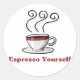 Eine Dampf-Tasse Kaffee mit Espresso Sie selbst darunter. Sie genießen Kaffee, warum nicht die Welt kennen lass.