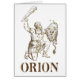En mythologie grecque, Orion était un chasseur puissant. On a parfois dit qu'il est le fils de Poseidon. Il a conduit les bêtes sauvages hors de l'île de Chios et est tombé amoureux de Merope, fille du roi de l'île. Désapprouvant Orion, le roi l'a fait aveugler, mais sa vision a été reconstituée par les rayons du Soleil Levant. Il plus tard est allé à Crète vivre et chasser avec Artemis. Quelques légendes soutiennent qu'il a été tué par Artemis ou Apollo hors de la jalousie ; un autre indique qu'il a été fatalement mordu par un scorpion. Après sa mort les dieux l'ont placé dans le ciel comme constellation.