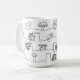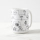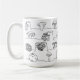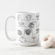 Eine Vielzahl der essbaren Pilzskizzen auf einer einfachen Tasse.