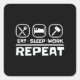 Essen Schlaf Arbeit Wiederholen Funny Hustle Quadratischer Aufkleber