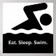 Iss, Schlafen. Schwimm. Poster - eine lebendige Hommage an die Leidenschaft des Schwimmers. Dieses Poster mit elegantem Design und lebhaften Farben ist eine stilvolle Erinnerung, bei der es für Schwimmer darum geht, sich den Rhythmus des Wassers zu eigen zu machen.