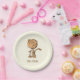 Adorable Teller zum ersten Geburtstag mit einer niedlichen Abbildung eines Babyleopards. Illustriert und entworfen von Patricia Alvarez.