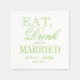 Essen Sie trinken und verheiratete Limonenservietten in Grün und Weiß. Anpassbare Farbe. Elegantes Skripttypografie-Design für klassische Hochzeitsfeier. Stilvolle handgeschriebene Kalligraphie kombiniert mit schicken formalen Schriftart. Trendy Vorlage mit anpassbaren Hintergrundfarben. Niedlicher Vintager Slogan für rustikal Country chic Abendtisch. Auch ideal für Proben-Dinner und Cocktailstunden. Personalisiert mit dem Namen der Braut und des Bräutigams plus dem Datum der Ehe. Schöne formelle Einmal-Hochzeitsdekor.