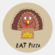 Essen Sie Pizza mit Erntedank Türkei Runder Aufkleber