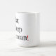 Weiße Tasse mit schwarzem Text und einem roten Ausrufspunkt