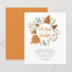 Essen, trinken und schätzen Erntedank Party oder Abendessen Einladung mit einem Kranz von Erntedank Elemente des Herbstes und Herbstlaubs.