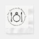 Die Cocktail-Servietten der Hochzeitsempfehlung verfügen über eine Gabel-, Messer- und Diamantenring-Einstellung und schreiben "Essen, trinken und Verheiratet sein! Danke, dass du mit uns gefeiert hast." Schwarz, Weiß und Platingrau.