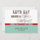 Elegante und unterhaltsame Schriftart verkünden die Nachricht: "Lasst uns essen, trinken und verheiratet werden!" auf einem wunderschönen whimsical Wedding Invitation Ensemble. In einer warmen, Retro-Farbpalette aus Vintagem Rot, Aquablau, Creme und Schokoladenbraun - das Beste von Vintag mit einer modernen Drehung. Auf der Vorderseite steht der Text "Save the Date" und Ihr Hochzeitstag. Auf der Rückseite befinden sich zwei Druckereien mit handkalligraphischem Schriftart und der Text "Feiern Sie mit uns" in einzigartigen und unterhaltsamen Schriftart zusammen mit Ihren Save the Date einladenden Informationen. Es gibt eine komplette Produktpalette mit diesem Design und wir können es in jeder beliebigen Farbkombination(en), die Sie wünschen, tun.