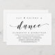 Modernes Script Thema, Hochzeit Einladungskarte (Essen, Trinken und Tanz). Es ist ideal für Ihre Hochzeit lässige Seefelder.