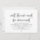Essen, trinken und Verheiratet sein, modernes minimalistisches Design Thema, Hochzeit Probe Dinner Einladungskarte (in schwarzem Schriftart und Sie können leicht ändern die Farbe des Schriftartes). Planen Sie ein Hochzeitsfest Probe Dinner mit der zu sein Braut und zu sein, vor ihrem großen Tag? Die Einladungs-Card für das Abendessen bei Hochzeit und Probe lädt zum Verweilen ein. Fügen Sie Ihre Probe Dinner Details in passenden Schriftart / Buchstaben.