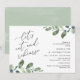 Schönes modernes Romantisches Design, in eucalyptus Blätter grüne Aquarell Thema, Hochzeit Probe Abendessen und Tanz Einladung Karte (Let's Eat and Rehearse). Dies ist ideal für Ihr Hochzeitsfest Probe Dinner Party. Fügen Sie Ihre Feierlichkeiten Details hinzu. #TeeshaDerrick