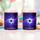 Un rendu fractal bleu et violet tourbillonnant d'une étoile de David suggérant la nature extrêmement chaude de la matière au moment de la création. Customisez en ajoutant votre propre texte.