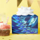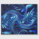 Estampa com imagem azul que se assemelha a algo parecido com uma estrela, mas foi submetida a efeitos de "onda" que fizeram wie linhas do desenhos tomarem uma forma de ziguezague.
