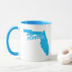 Montrez votre fierté nationale avec ces t-shirts et autres objets qui ont un contour bleu de l'état de la Floride avec le nom à l'intérieur de la forme.