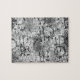 Ein eklektisches abstrakte, das Zebrastreifen-Kreise umfasst. Die Farben reichen von grau (oder grau) über Kohle bis schwarz.